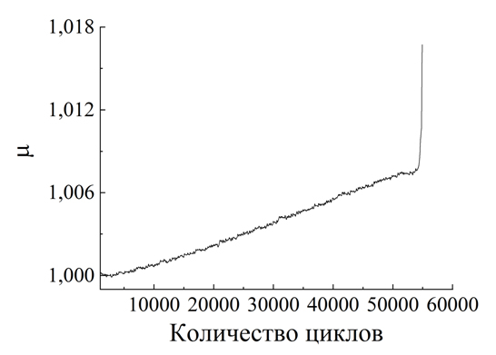 Мониторинг изменения относительной магнитной проницаемости при циклических испытаниях на изгиб образцов из аустенитной стали 10Х18Н10Т